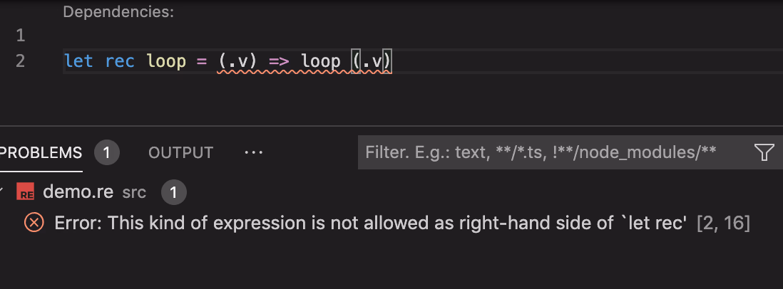 RElet highOrder = (f,a,b)=> f (a, b) // can not infer the arity of `f` since we know // nothing about the arity of `f`, unless // we do the whole program optimization